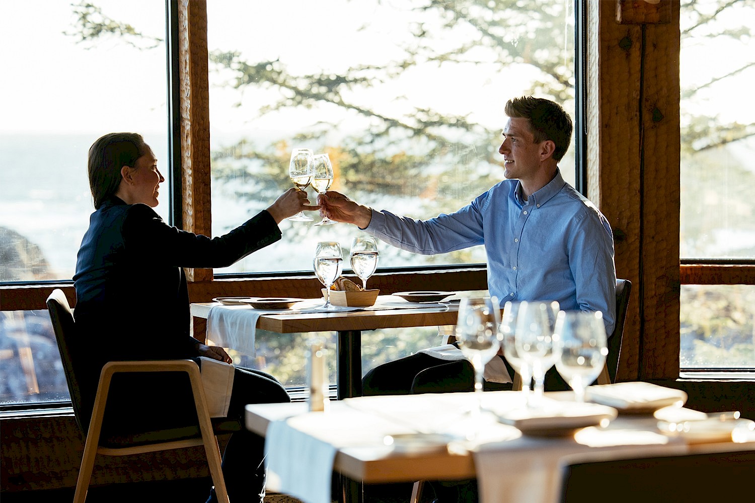 The Pointe Restaurant at the Wickaninnish Inn sits where land meets sea, perched on a rocky headland as waves crash against ancient stone below. The Pacific Ocean stretches before you, uninterrupted and ever-changing. Here, the power of place shapes every moment of your meal.